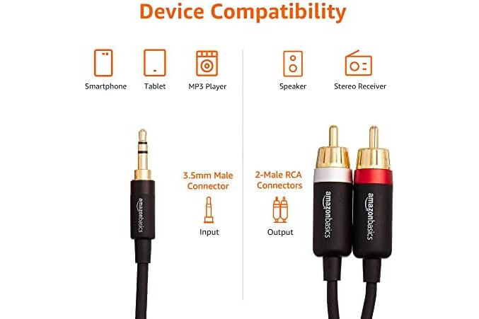 CONNECTS DEVICES: Easily connects devices like a smartphone, tablet, or MP3 player to a speaker, stereo receiver, or other RCA-enabled device