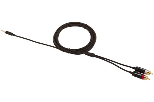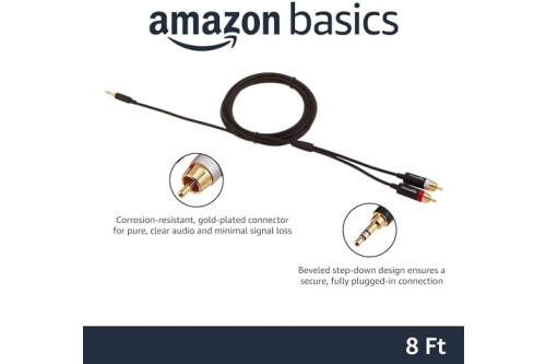Amazon Basics 3.5 Aux to 2 x RCA Adapters, Audio Cable for Amplifiers, Active Speakers with Gold-Plated Plugs, 8 Feet/2.4 m, Black