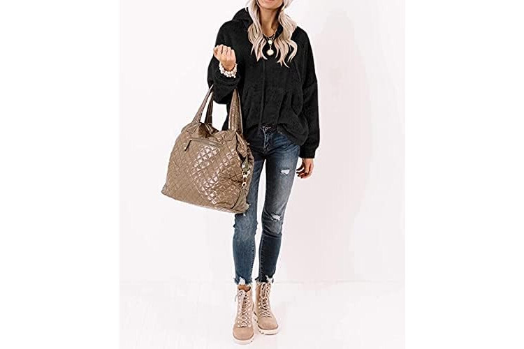 Ezbelle Women's Color Block Zip Up Hoodie Sweatshirt Casual Long Sleeve Jacket Sweater with Pockets Loose Tops
