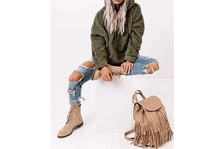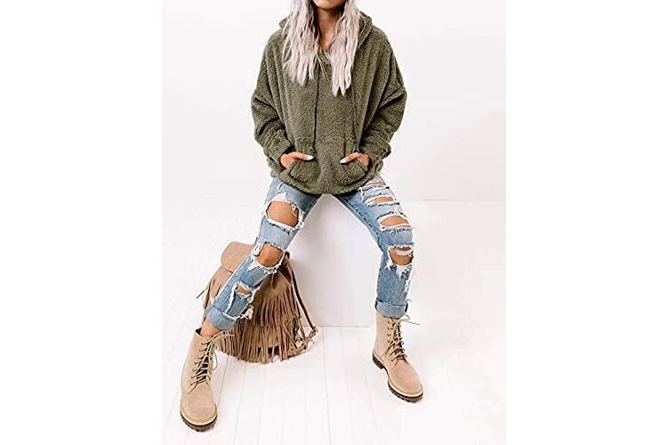 Ezbelle Women's Color Block Zip Up Hoodie Sweatshirt Casual Long Sleeve Jacket Sweater with Pockets Loose Tops