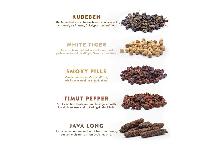 ✅ EXOTISCHE RARITÄTEN ENTDECKEN: Das Gewürze Geschenkset vereint 5 der erlesensten Pfeffer der Welt. Mit diesem Pfeffer Set lernst du das bekannte Gewürz von einer komplett neuen Seite kennen