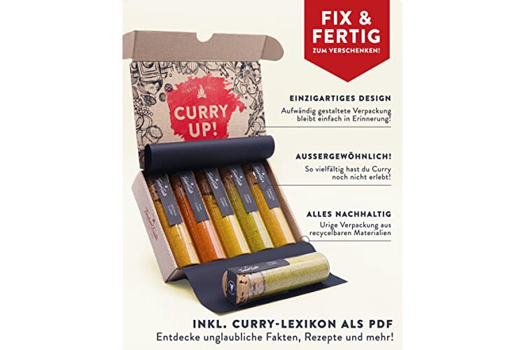 Indisches Gewürz Geschenkset | 5x Curry Gewürzmischung inkl. Geschmacks-Ratgeber (PDF) | Gewürzgeschenke Set für die Küche mit orientalische Gewürze, Geburtstagsgeschenke Erwachsene, Männer & Frauen