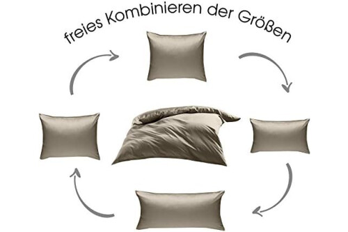 Inhalt: 1 Kissenbezug 40x80 cm. Mako-Satin Bettwäsche aus 100% Baumwolle. Farbe: braun (taupe). Produziert in der EU (Made in EU).