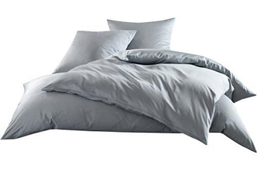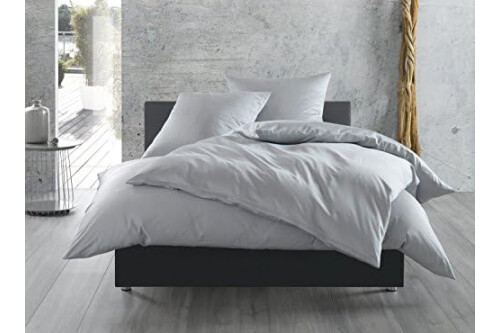 Bettwaesche-mit-Stil Mako-Satin Baumwollsatin Bettwäsche Uni einfarbig zum Kombinieren (Kissenbezug 40 cm x 80 cm, Grau)