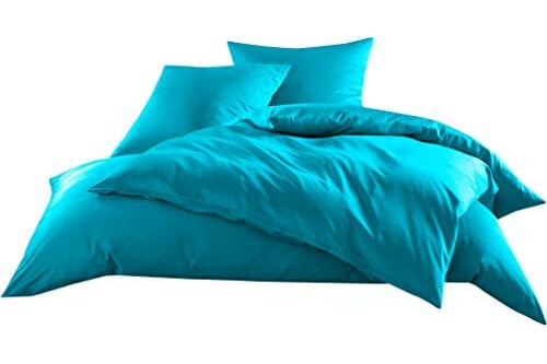 Mako-Satin Baumwollsatin Bettwäsche Uni einfarbig zum Kombinieren (Kissenbezug 40 cm x 80 cm, Türkis) viele Farben & Größen