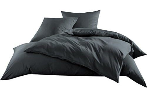 Bettwaesche-mit-Stil Mako-Satin Baumwollsatin Bettwäsche Uni einfarbig zum Kombinieren (Bettbezug 155 cm x 200 cm, Anthrazit)