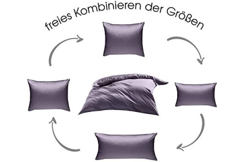 Inhalt: 1 Bettbezug 150x200 cm. Mako-Satin Bettwäsche aus 100% Baumwolle. Farbe: lilane Bettwäsche. Produziert in der EU (Made in EU).