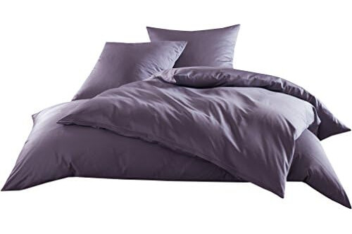Bettwaesche-mit-Stil Mako-Satin Baumwollsatin Bettwäsche Uni einfarbig zum Kombinieren (Bettbezug 155 cm x 200 cm, Lila)