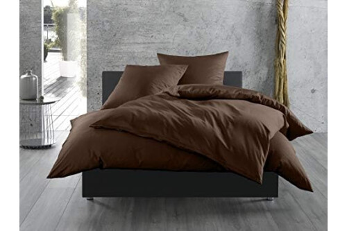 Bettwaesche-mit-Stil Mako-Satin Baumwollsatin Bettwäsche Uni einfarbig zum Kombinieren (Bettbezug 155 cm x 220 cm, Dunkelbraun)