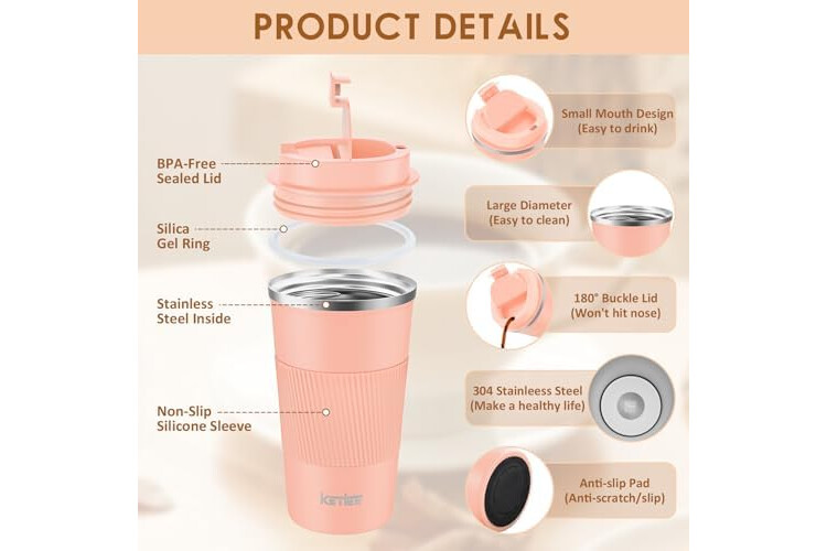 【Hochwertiges Material】KETIEE Travel Mug besteht aus hochwertigem 304 Edelstahl, ist sicher und langlebig und hält das Getränk ohne besonderen Geruch. Die neu verbesserte Anti-Rutsch-Schutzhülle verhindert das Herunterfallen des Bechers. Der Boden der Kaffeetasse aus Edelstahl Travel hat eine Gummisohle, um Kratzer oder Rutschen auf der Oberfläche zu vermeiden.