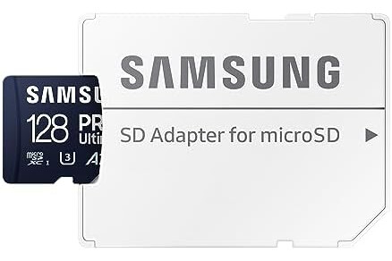 Lieferumfang: 1 x Samsung PRO Ultimate microSD Speicherkarte (MB-MY128SA/WW), 128 GB, Inkl. SD-Adapter, Maße (L x B x T): 15 x 11 x 1 mm, Gewicht: 0,26 g