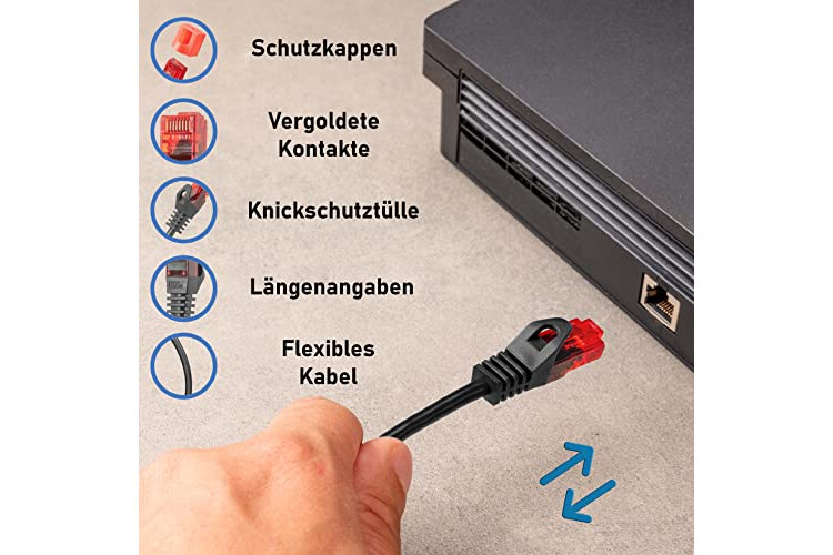 Verwendung mit Geräten und Komponenten wie Patchpanel, Netzwerkdosen, RJ45 Keystone, Ethernet Switch, Router, Modem, IP-Kamera, Überwachungskamera, NAS, Smart TV, Smart-Home-Geräte, TV SAT Receiver