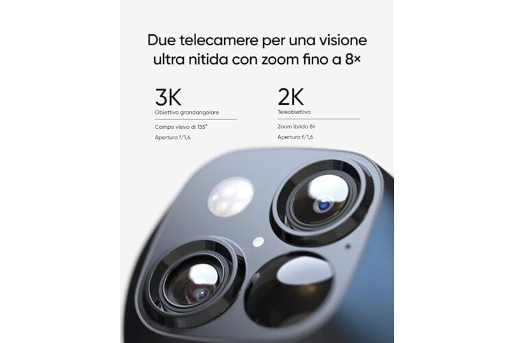 Produkt 1: DUAL-KAMERA-KLARHEIT BIS ZU 15m: Halte jedes Ereignis in deinem Zuhause in ultra-klarer 3K-Auflösung fest. Mit 8× Zoom siehst du genau, wer sich deinem Zuhause nähert.