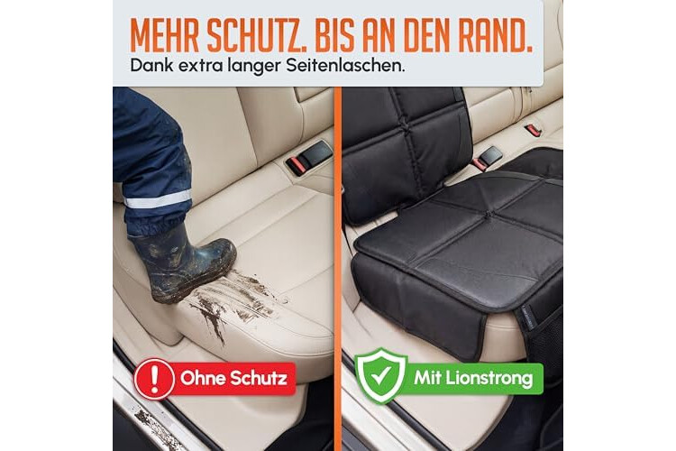 • SCHÜTZT IHR AUTO EFFEKTIV - Sie erhalten eine gepolsterte Kindersitzunterlage mit zusätzlichen Seitenlaschen für mehr Schutz Ihrer Autositze.