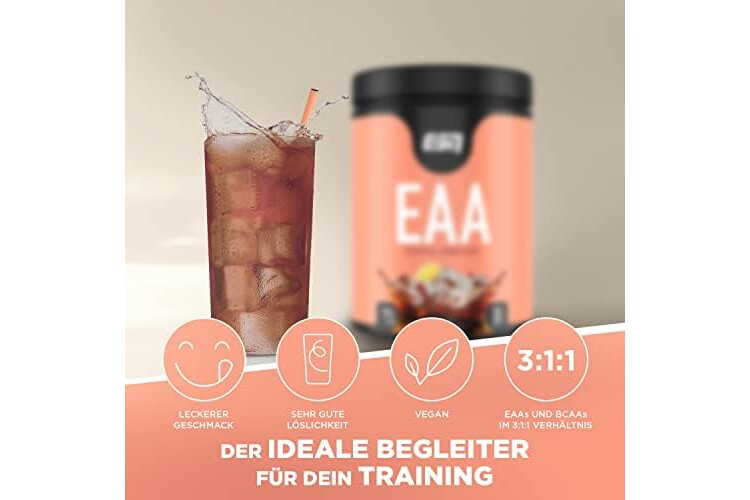 AMINOSÄURENPROFIL: Die ESN EAA Dose enthält alle 8 essenziellen Aminosäuren und zusätzlich die BCAAs im optimalen 3:1:1 Verhältnis