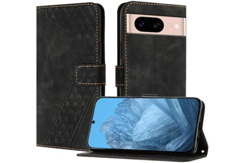 Handyhülle für Google Pixel 8a Hülle, PU Leder Klapphülle Kartenfach Ständer Magnetisch, Flip Case Cover Handytasche Stoßfeste Schutzhülle für Google 8a (Schwarz)