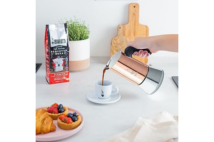 Bialetti New Venus Kaffeemaschine 2 Tassen, Anti-Brand-Griff, nicht für Induktion geeignet, 2 Tassen (85 ml), Edelstahl, Farbe - Kupfer, Wattage - 3600