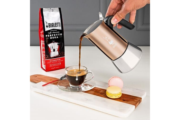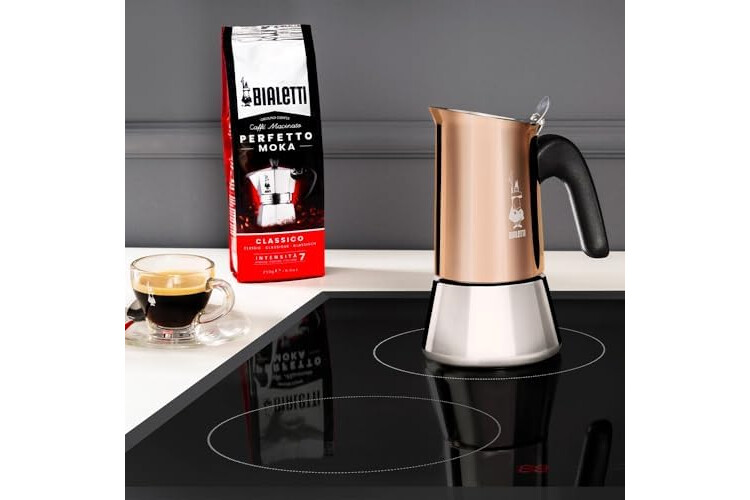 Bialetti New Venus Kaffeemaschine 6 Tassen, Anti-Brand-Griff, nicht für Induktion geeignet, 6 Tassen (235 ml), Edelstahl, Bronze
