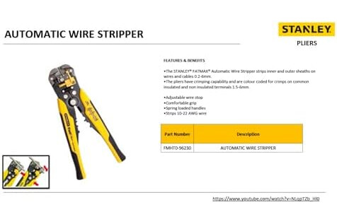 | Lieferumfang | utomatische Schneid- und Abisolierzange |