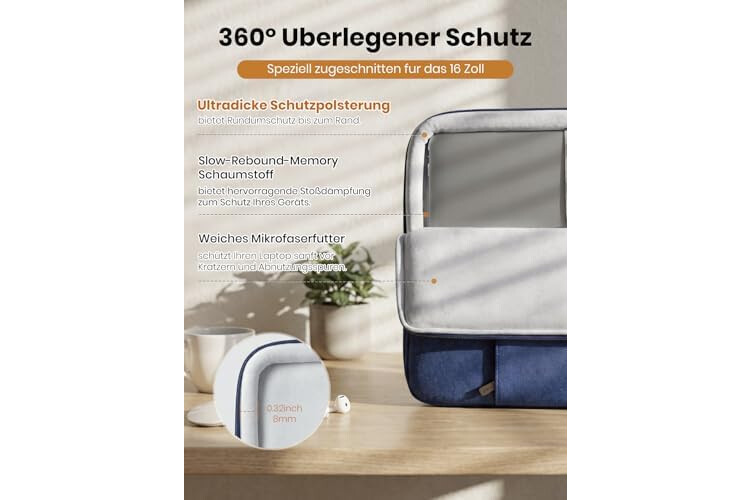 • Starker Schutz: Die gepolsterten Ränder mit verdickten Schlaufen sind so konzipiert, dass Ihr Laptop auch bei Stürzen und Stößen gut geschützt ist. Und das dicke, weiche Fleece-Material im Inneren sorgt dafür, dass...