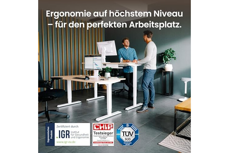 𝗟𝗲𝗶𝘀𝘁𝘂𝗻𝗴𝘀𝘀𝘁𝗮𝗿𝗸 & 𝗳𝗹ü𝘀𝘁𝗲𝗿𝗹𝗲𝗶𝘀𝗲 - Der TÜV geprüfte, außergewöhnlich stabile Steh-Sitz-Tisch Desktopia Pro X bewegt sich dank 2 zuverlässiger ErgoQuiet Motoren mit Leichtigkeit und extra leise. Er trägt bis zu 125 kg und ist für alle Körpergrößen geeignet.
