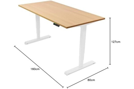 Ergotopia Desktopia Pro X Elektrisch höhenverstellbarer Schreibtisch, Ergonomischer Stehtisch für Büro oder Home Office (Buche, Gestell Weiß, 180 x 80 cm)
