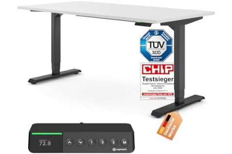 𝗟𝗲𝗶𝘀𝘁𝘂𝗻𝗴𝘀𝘀𝘁𝗮𝗿𝗸 & 𝗳𝗹ü𝘀𝘁𝗲𝗿𝗹𝗲𝗶𝘀𝗲 - Der TÜV geprüfte, außergewöhnlich stabile Steh-Sitz-Tisch Desktopia Pro X bewegt sich dank 2 zuverlässiger ErgoQuiet Motoren mit Leichtigkeit und extra leise. Er trägt bis zu 125 kg und ist für alle Körpergrößen geeignet.