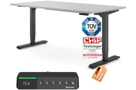 𝗟𝗲𝗶𝘀𝘁𝘂𝗻𝗴𝘀𝘀𝘁𝗮𝗿𝗸 & 𝗳𝗹ü𝘀𝘁𝗲𝗿𝗹𝗲𝗶𝘀𝗲 - Der TÜV geprüfte, außergewöhnlich stabile Steh-Sitz-Tisch Desktopia Pro X bewegt sich dank 2 zuverlässiger ErgoQuiet Motoren mit Leichtigkeit und extra leise. Er trägt bis zu 125 kg und ist für alle Körpergrößen geeignet.