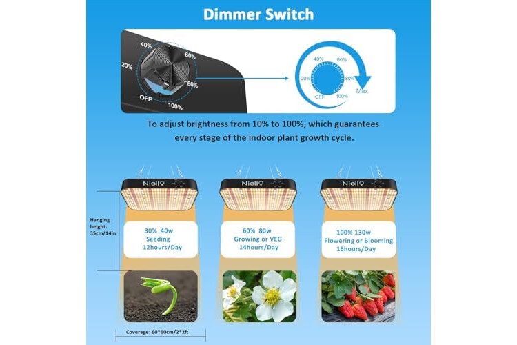 Energieeffiziente : Pflanzenlampe 1200w verbraucht nur 130 Watt Wirkleistung , und niello grow led light ersetzen das herkömmliche 1200 W. Das led grow light ist mit 584LEDs , um die maximale Lichtleistung zu gewährleisten.Diese LED grow Lampe erhöht die Ausbeute und senkt gleichzeitig die Kosten