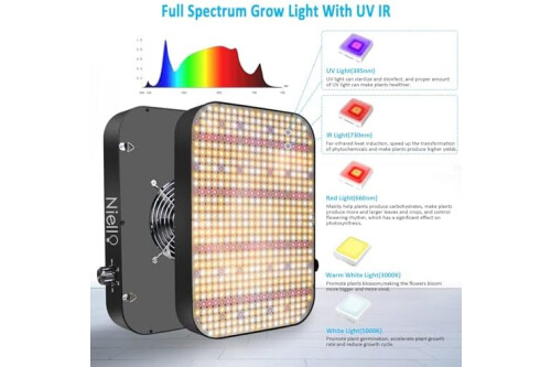 Niello 1200W LED Grow Lampe, Pflanzenlampe Vollspektrum, UV & IR für Zimmerpflanzen, Pflanzenlicht mit dimmbarer, Daisy Chain Funktion für VEG, Blumen.