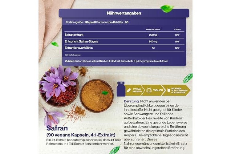 〚𝐇𝐨𝐜𝐡𝐝𝐨𝐬𝐢𝐞𝐫𝐭𝐞𝐫 𝐄𝐱𝐭𝐫𝐚𝐤𝐭〛Unser Safran-Supplement liefert einen hochwirksamen 4:1-Extrakt mit einer 800-mg-Äquivalentdosis pro Kapsel für maximale Wirksamkeit. Gewonnen aus hochwertigen Safran-Stigmen wirkt diese konzentrierte Formel als natürliches Gehirn-Supplement und kognitives Supplement zur Unterstützung der täglichen mentalen Leistungsfähigkeit.