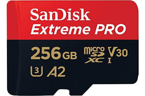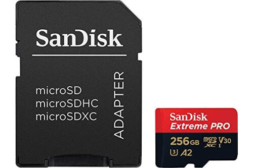 Lieferumfang: SanDisk Extreme PRO microSDXC UHS-I Speicherkarte 256 GB + Adapter & RescuePRO Deluxe (Für Smartphones, Actionkameras oder Drohnen, A2, V30, U3, 200 MB/s Übertragung) 30 Jahre Garantie