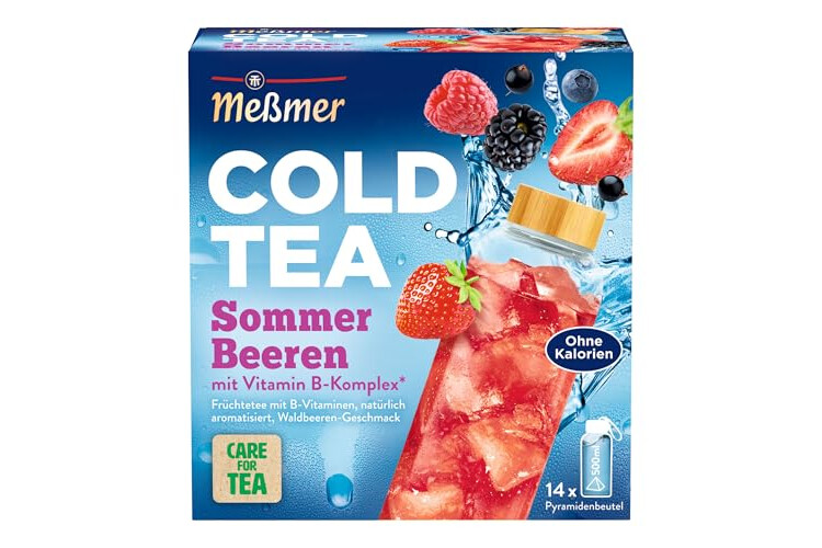 Meßmer Cold Tea Sommer-Beeren| Früchtetee | Kaltaufguss mit Vitamin B-Komplex | ohne Zuckerzusatz | 14 Pyramidenbeutel