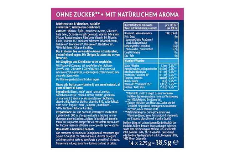 • Mit Vitamin B6 und B12: Tragen zur Reduktion von Müdigkeit und Erschöpfung bei.