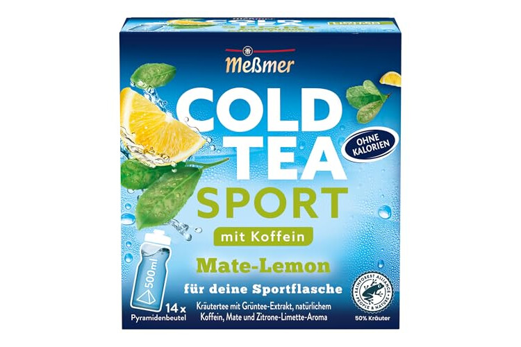 Meßmer Cold Tea Sport Mate-Lemon| Kräutertee mit Grüntee-Extrakt | Kaltaufguss mit Koffein | ohne Zuckerzusatz | 14 Pyramidenbeutel