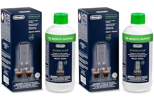 De'Longhi Original EcoDecalk DLSC 500 – Entkalker für Kaffeemaschinen & Kaffeevollautomaten, Universal Kalklöser für 5 Entkalkungsvorgänge, 500 ml, Weiß (Packung mit 2)
