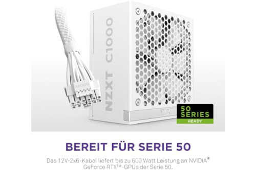 BEREIT FÜR SERIE 50: Der robuste, hitzebeständige 12V-2x6-Anschluss liefert bis zu 600 Watt an NVIDIA GeForce RTX-Grafikkarten der Serie 50.