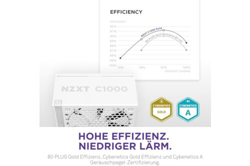 HOHE EFFIZIENZ, NIEDRIGER LÄRM — Ausgezeichnete Zertifizierungen von 80 PLUS Gold Effizienz, Cybenetics Gold Effizienz und Cybenetics A Geräuschpegel.