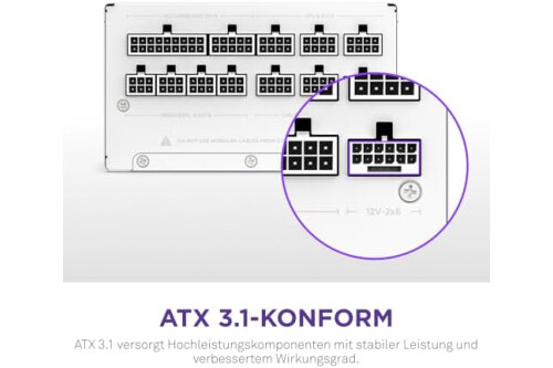 ATX 3.1: Entspricht dem ATX 3.1-Standard, um Hochleistungs-PC-Komponenten mit Stabilität, Effizienz und Widerstandsfähigkeit gegen Stromspitzen zu versorgen.