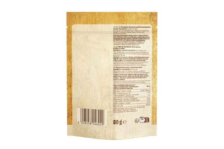 Lieferumfang: Macadamias geröstet & gesalzen 1 x 125 g |vegan - ohne Zusatz von Aromen, Farb- und Konservierungsstoffen - für langanhaltenden Genuss unter Schutzatmosphäre verpackt