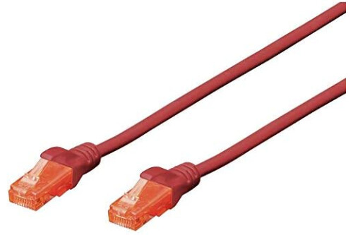 DIGITUS LAN Kabel Cat 6 - 0,5m - CCA Netzwerkkabel Mit RJ45 - U/UTP Ungeschirmt - Kompatibel zu Cat-6A & Cat-5e - Rot