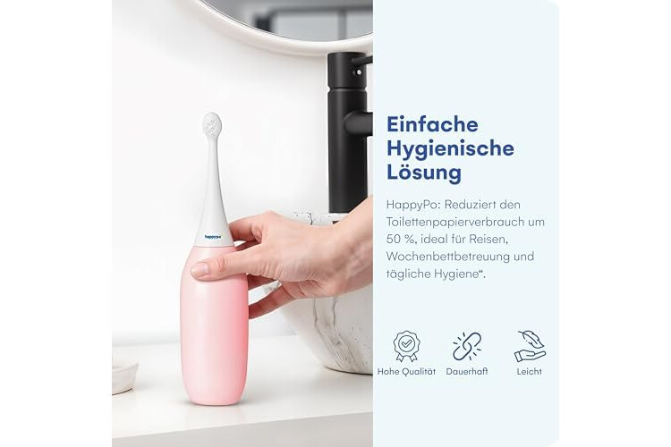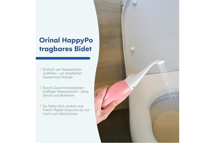HappyPo Tragbar Po Dusche 300 ml - Tragbares Bidet für Männer und Frauen - Toilette Popodusche Ersetzt Feuchtes Toilettenpapier - Intimdusche für Schwangerschaft, Wochenbett und Reisen - Rosa