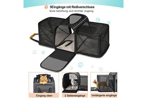 • Transportbox für Katzen Große: Diese katzen transportboxen misst 45x30x36 cm (90 x 30 x 36 cm, wenn sich 2 seiten große erweiterungen vollständig ausdehnen), die perfekt für welpe und katze passt, kann nach dem erweitern sogar 2 kätzchen aufnehmen. Die hunde und katzen können darin spielen, nachdem 5 reißverschluss tür geöffnet sind, ideal für autofahrten oder vielleicht als haustierhaus. Passend für haustiere bis 7 kg.