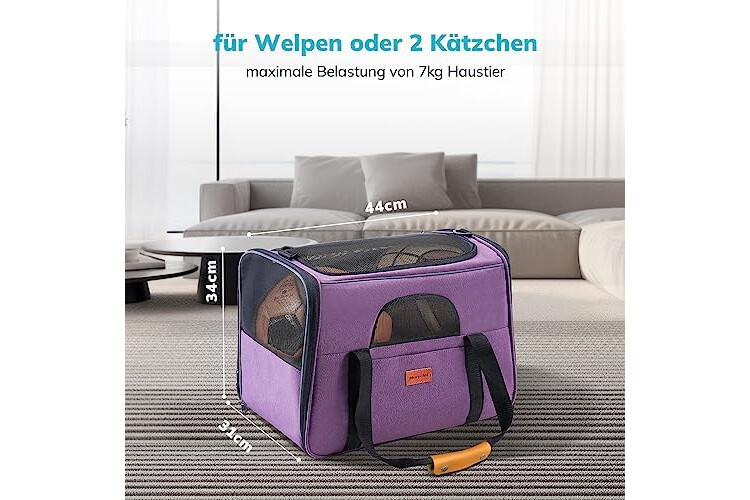 • Tolles Design: Diese tragbare Haustiertasche ist aus strapazierfähigem Polyester und kann durch das Stützbrett in guter Form bleiben. Mittlerweile verfügt es über atmungsaktives Netzgewebe auf der Oberseite und an den Seiten, um die Luftzirkulation im Inneren der Box zu gewährleisten und auch Ihren kleinen Freund zu schauen. An der Außenseite der Tasche befindet sich eine kleine Tasche, um Leckereien und Dinge aufzubewahren, die Sie für Ihr Haustier benötigen.