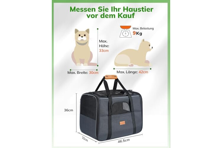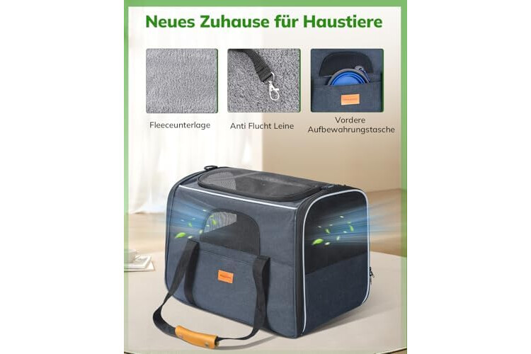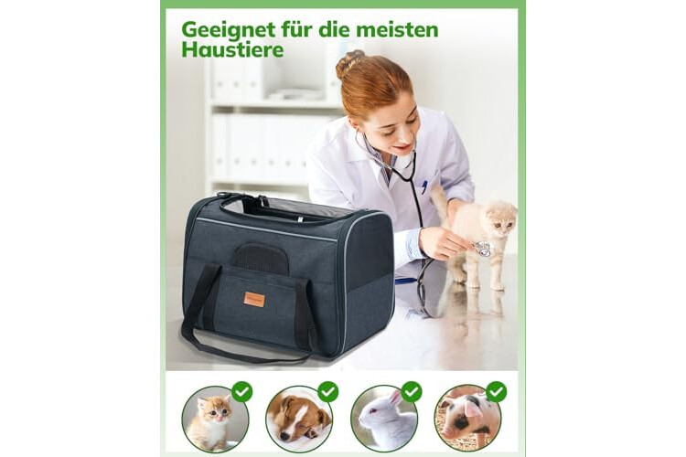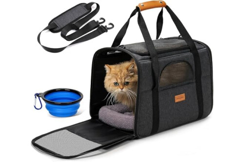 Morpilot Katzentransporter mit weichen Seiten für große, mittelgroße Katzen und Welpen bis zu 9 kg, Haustiertransporter mit Sicherheitsreißverschlüssen