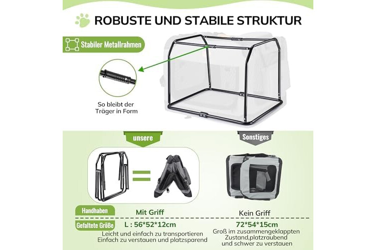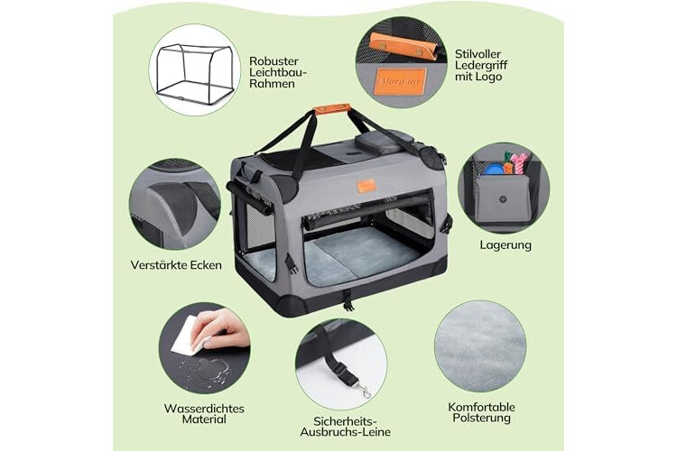 | Besondere Merkmale | Faltbar, Dauerhaft, Atmungsaktiv, Verstellbarer Schulterriemen, Sicherungsreißverschluss, Mit weichen Rändern |