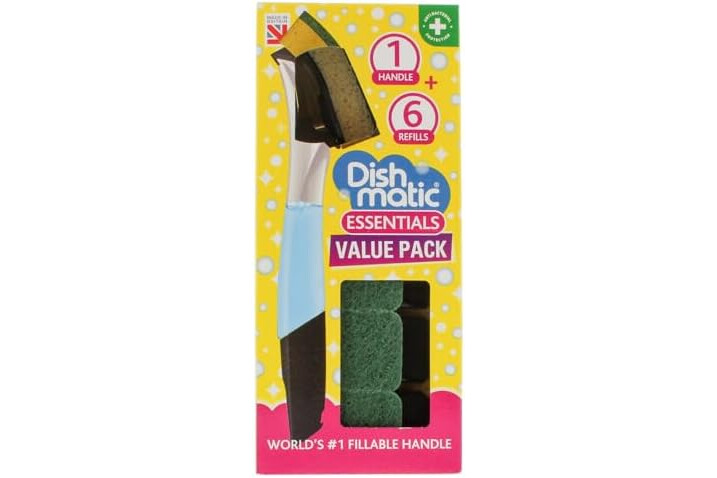Ihr liebenswerter Geschirrfreund – mit einem nachfüllbaren Griff und einer Reihe von austauschbaren Schwammköpfen für schnelles und effektives Abwaschen ist Dishmatic Ihr liebenswerter Geschirrfreund. Inklusive 6 Allzweck-Schwammköpfen mit antibakteriellem Schleifmittel