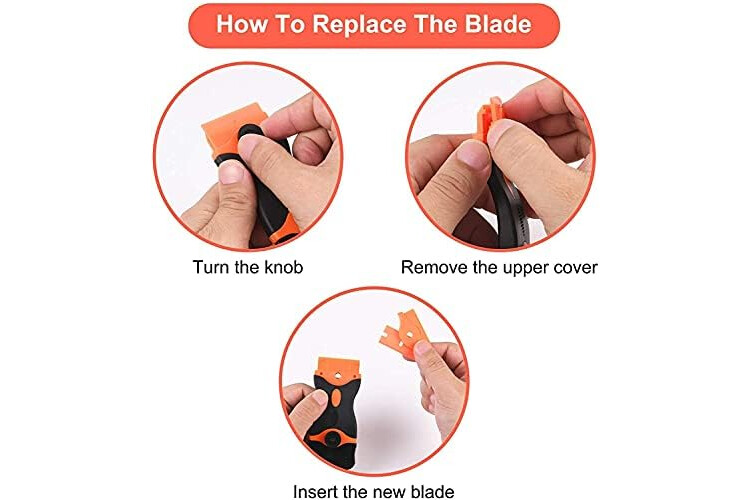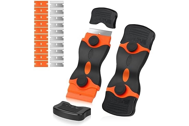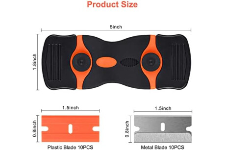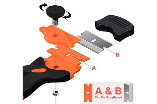 【SICHERES REINIGUNGSSCHABERWERKZEUG】: Die Sicherheitsknöpfe auf beiden Seiten des Abstreifers sorgen für gute Stabilität. Ersetzen Sie die Klinge einfach. Darüber hinaus sind beide Enden des Abstreifers mit Sicherheitsabdeckungen zur einfachen Aufbewahrung und zur Vermeidung versehentlicher Schnitte ausgestattet.