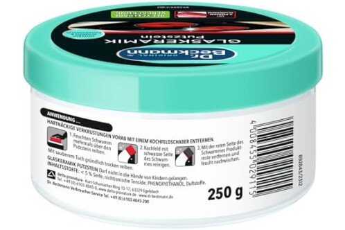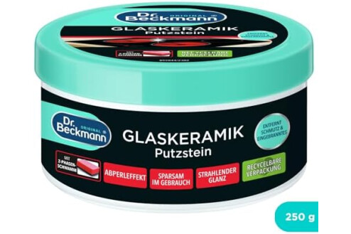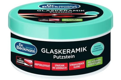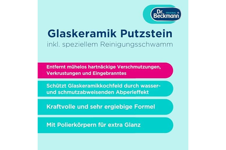 Dr. Beckmann Glaskeramik Putzstein | effektiver Kochfeld-Reiniger gegen hartnäckigen Schmutz | inkl. Spezialschwamm | 250 g (1er Pack) | Verpackung kann abweichen