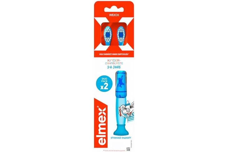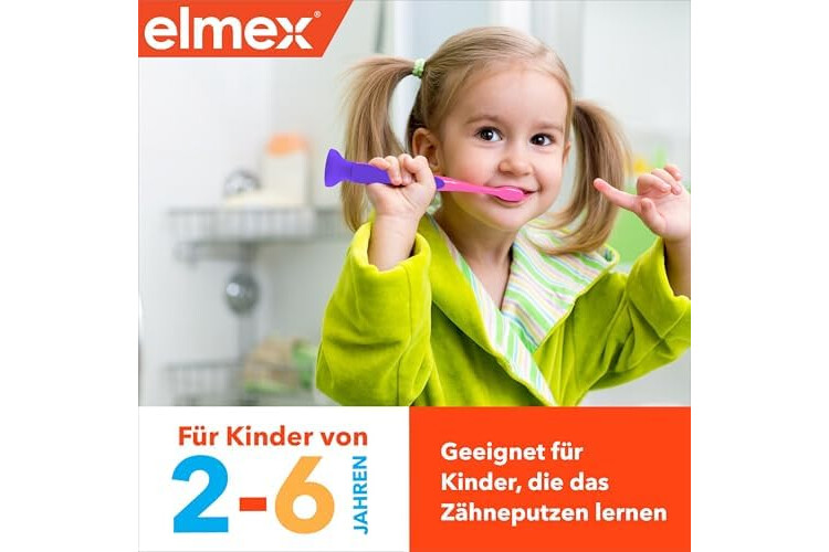 elmex Kinderzahnbürste 2-6 Jahre, 2 Stück – weiche, abgerundete Borsten für ein gründliches Putzen der Milchzähne – kindgerechte Zahnbürste für alle Griffarten geeignet